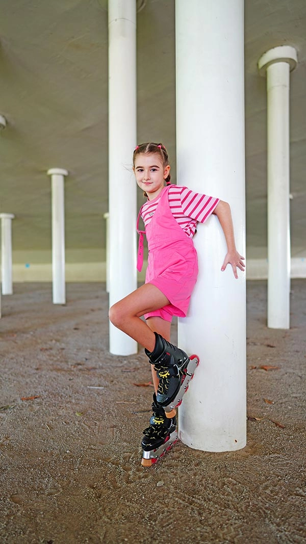 Celebrate the confidence and charm of young figure skaters, capturing their journey in inline skating